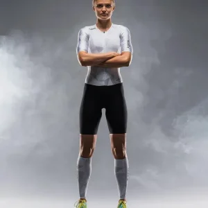 Dit trisuit is gemaakt met oa. Aquazero-stof, waterafstotend voor sneldrogend en platte naden om wrijving te voorkomen. Het maakt gebruik van de specifieke elastische interface “TRI” zeem.