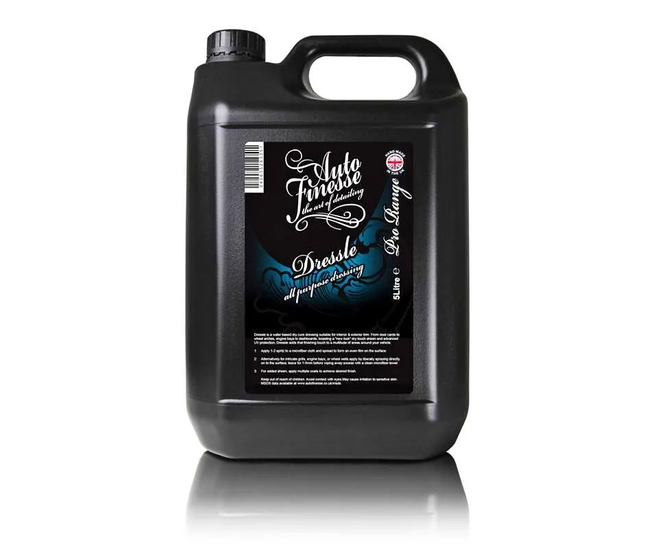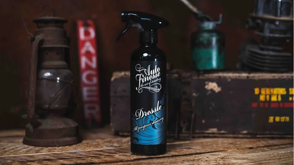 Auto Finesse Dressle is een multifunctionele dressing voor kunststof van zowel interieur als exterieur. Deze snel drogende dressing op waterbasis is de finishing touch voor een veelvoud aan materialen in en rondom de hele wagen. Van motorruimte tot interieur, wielkassen tot moeilijk te bewerken roosters of grills.