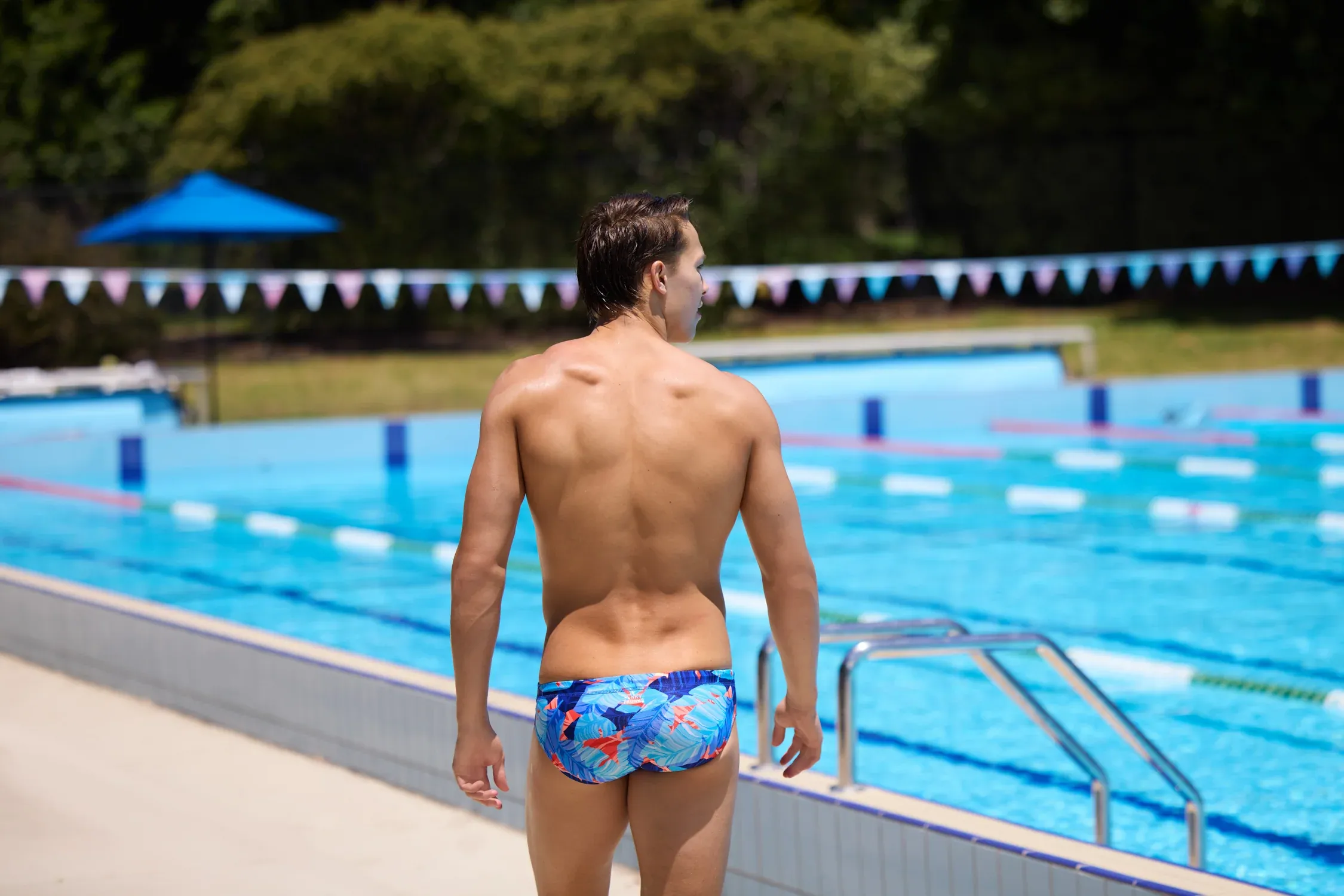 Laten we het simpel houden. Deze briefs is een klassiek gesneden zwembroek met 8 cm zijkanten met een opgestikt zakje aan de voorkant voor extra ruimte met dubbele voering voor ondersteuning. Er is een trekkoord om de zwembroek op zijn plaats te houden en een brede elastische beenopening en tailleband voor extra comfort rond je heupen en benen.
