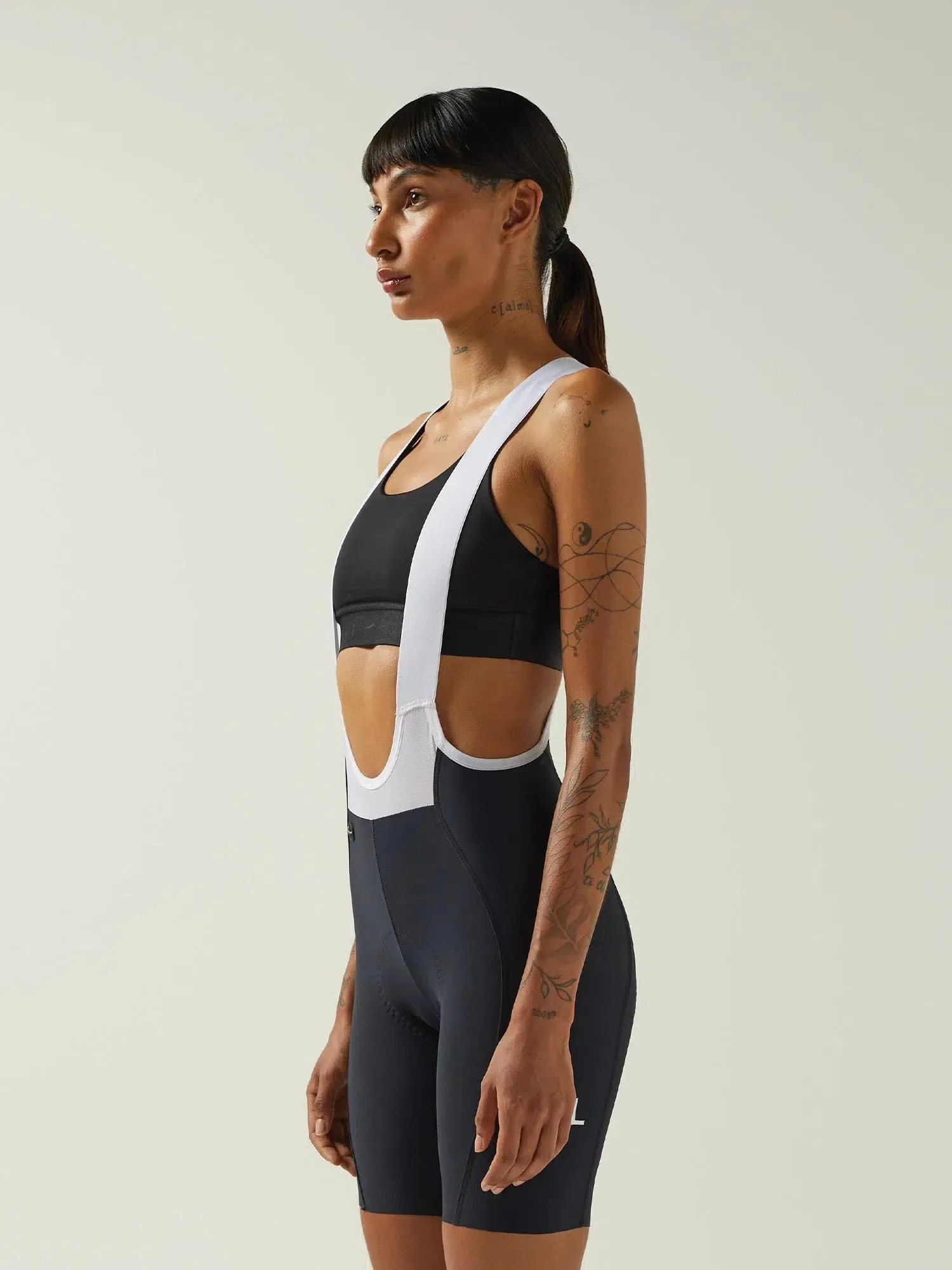 Italian raw-edge compression fabric for increased blood flow. - Opnieuw ontworpen bretels met zachte bretels en ademend achter- en voorpand.