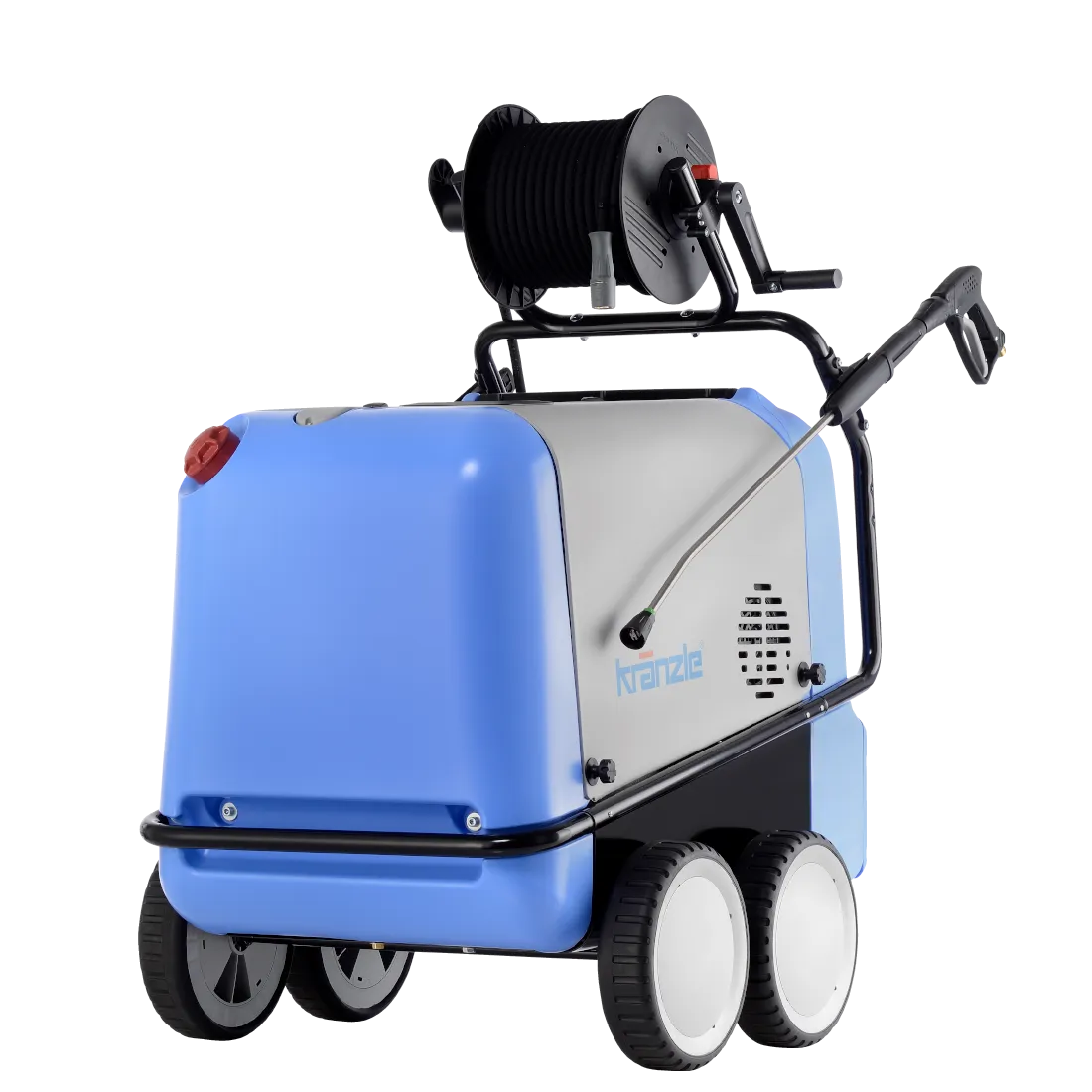 Kränzle Therm 635-1: Krachtige warmwater hogedrukreiniger met handige haspel voor 20 m staalversterkte slang. Uitgerust met een instelbare werkdruk van 30-175 bar en een debiet van 635 l/h. Het viervoudig veiligheidssysteem, digitaal instelbare thermostaat, en INOX hogedruklans bieden betrouwbare prestaties. Met een robuust ontwerp, 218 kg gewicht en een snelwisselsysteem D12 voor gebruiksgemak. Geschikt voor intensieve reinigingstaken met functies zoals totaalstop, niveaubeveiliging brandstoftank, en reinigingsmiddelaanzuiging. Compleet geleverd met accessoires zoals een uitschakelbaar pistool, vlakstraalkop, parkeerrem, en watertoevoerfilter.