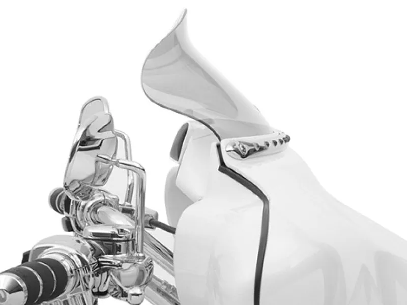 Klock werks flare windscherm 1996 tot 2013 touring modellen is een windscherm van dat geschikt is voor montage op de originele batwing fairings van Harley Davidson ® FLHT Electra Glide , Ultra Glide, Electra glide ultra limited en FLHX Streetglide modellen die geproduceerd zijn tussen eerder genoemde bouwjaren.